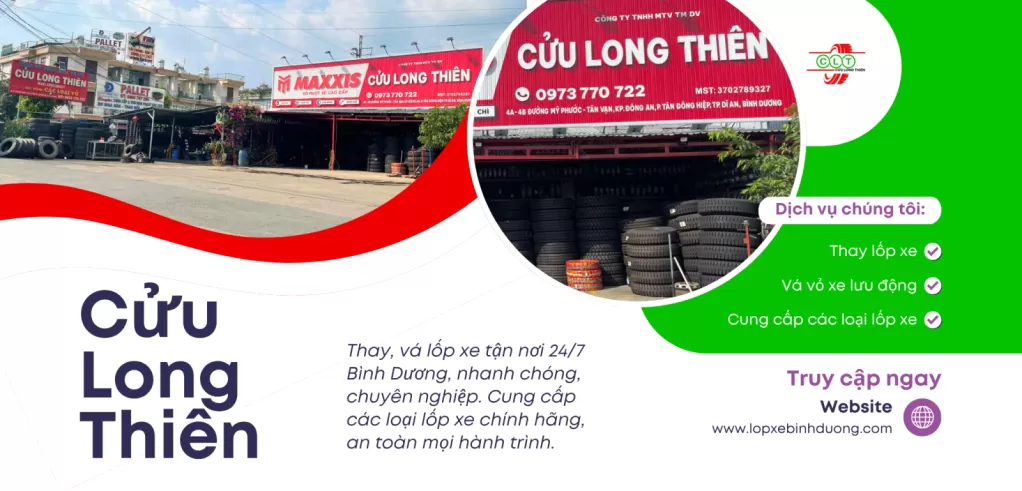 👉 CÔNG TY TNHH MTV TM DV CỬU LONG THIÊN tự hào là đơn vị chuyên cung cấp lốp xe tải chính hãng tại Bình Dương và dịch vụ cứu hộ săm lốp tốt nhất tại TP.HCM, được hàng ngàn khách hàng tin tưởng lựa chọn.